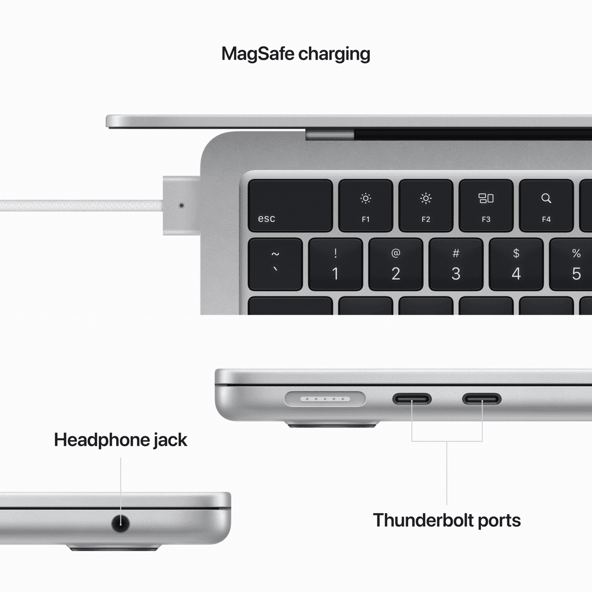 The quick-release MagSafe power connector brings you peace of mind while freeing up two Thunderbolt ports for high-speed accessories — or up to a 6K display. And the headphone jack supports high‑impedance headphones.
